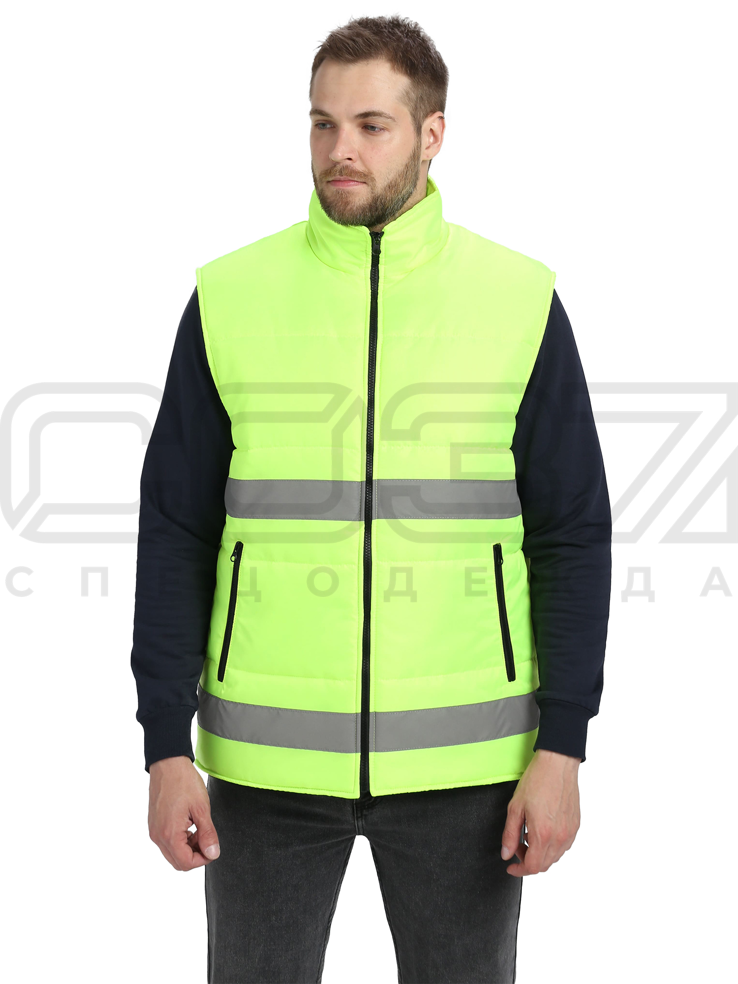 Жилет сигнальный утеплённый "Квазар" с СОП цв.лимонный тк.оксфорд в Москве