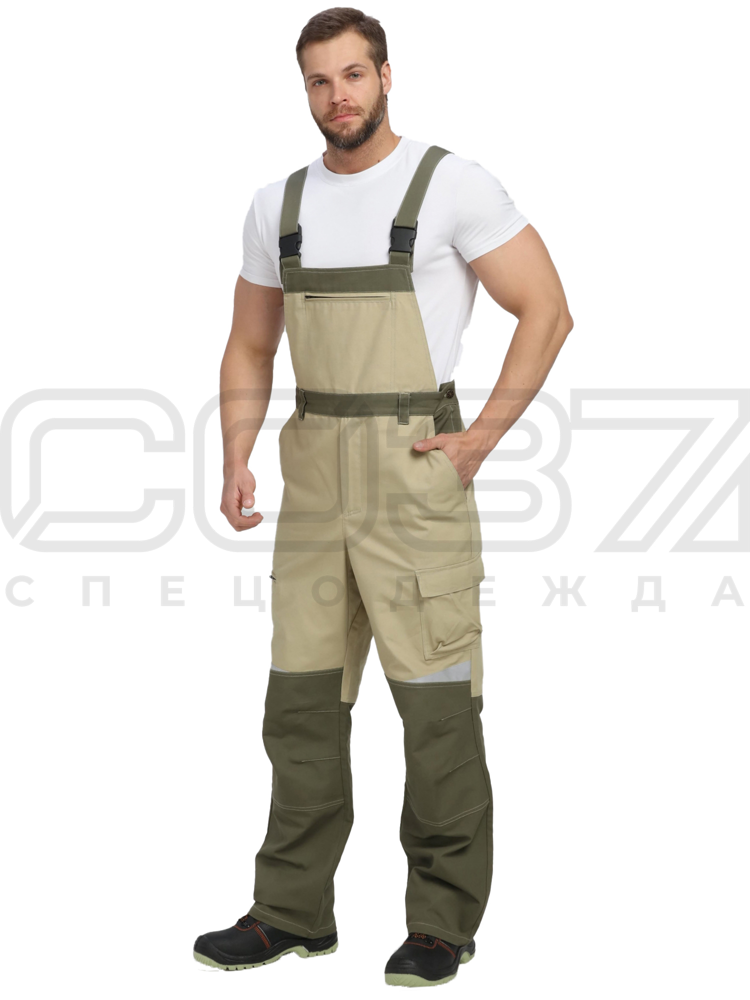 Полукомбинезон рабочий "Фулема" цв.хаки/бежевый тк.канвас в Москве