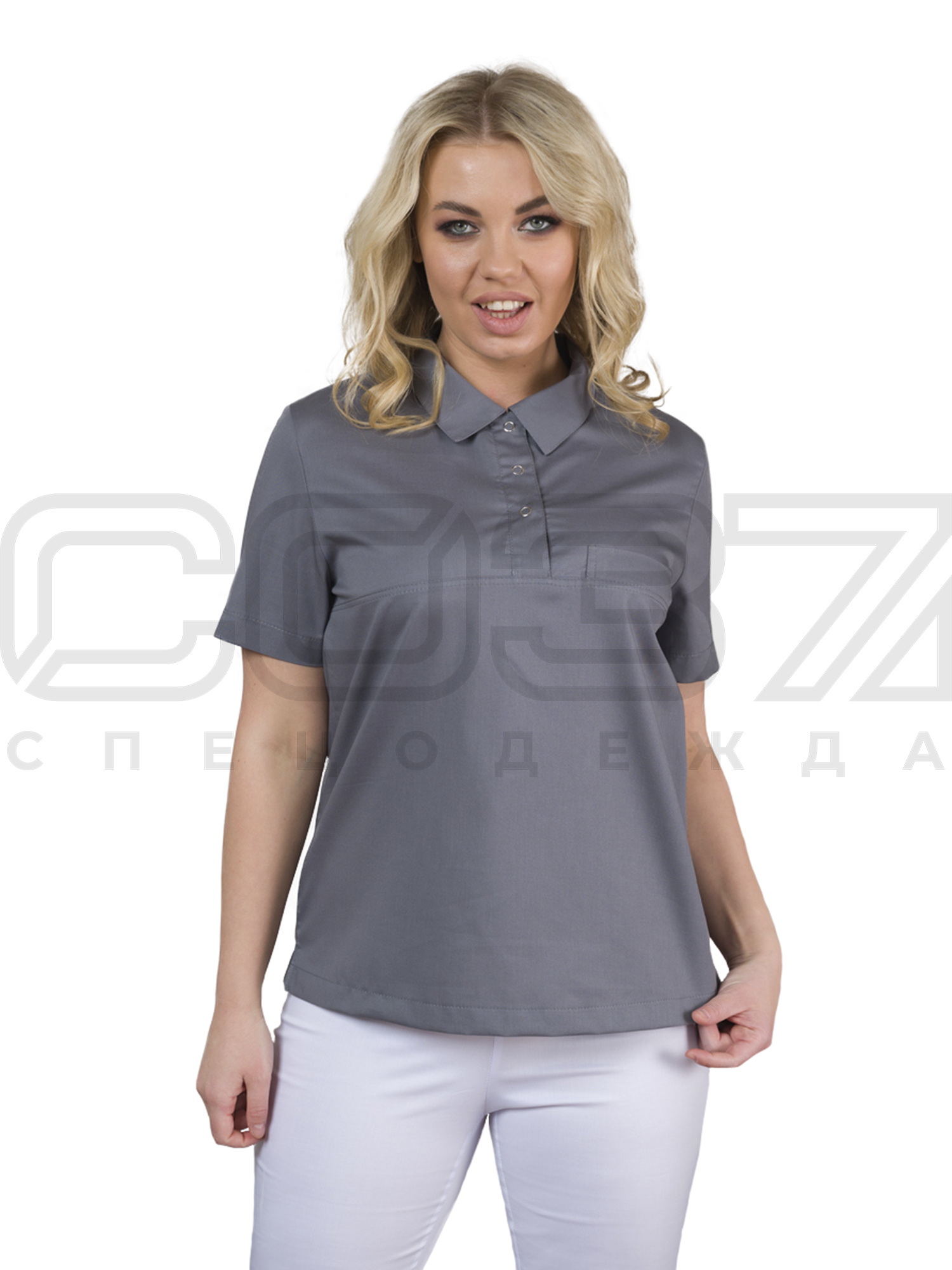 Блузка-поло медицинская женская ИМ283(73) цв.графит тк.элит/стрейч в Москве