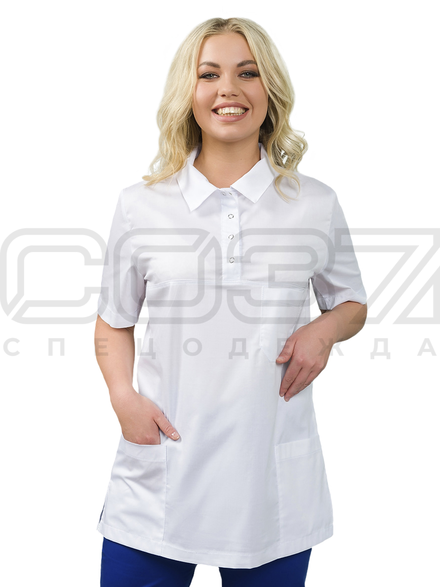 Блузка-поло удлинённая медицинская женская ИМ282(0) цв.белый тк.элит/стрейч в Москве
