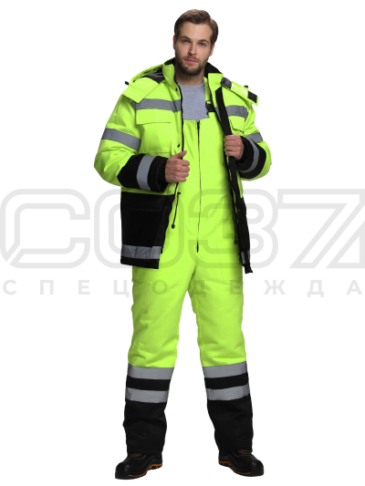 Костюм рабочий зимний "Грейдер" с СОП цв.лимонный/чёрный тк.смесовая (куртка+пк) в Москве
