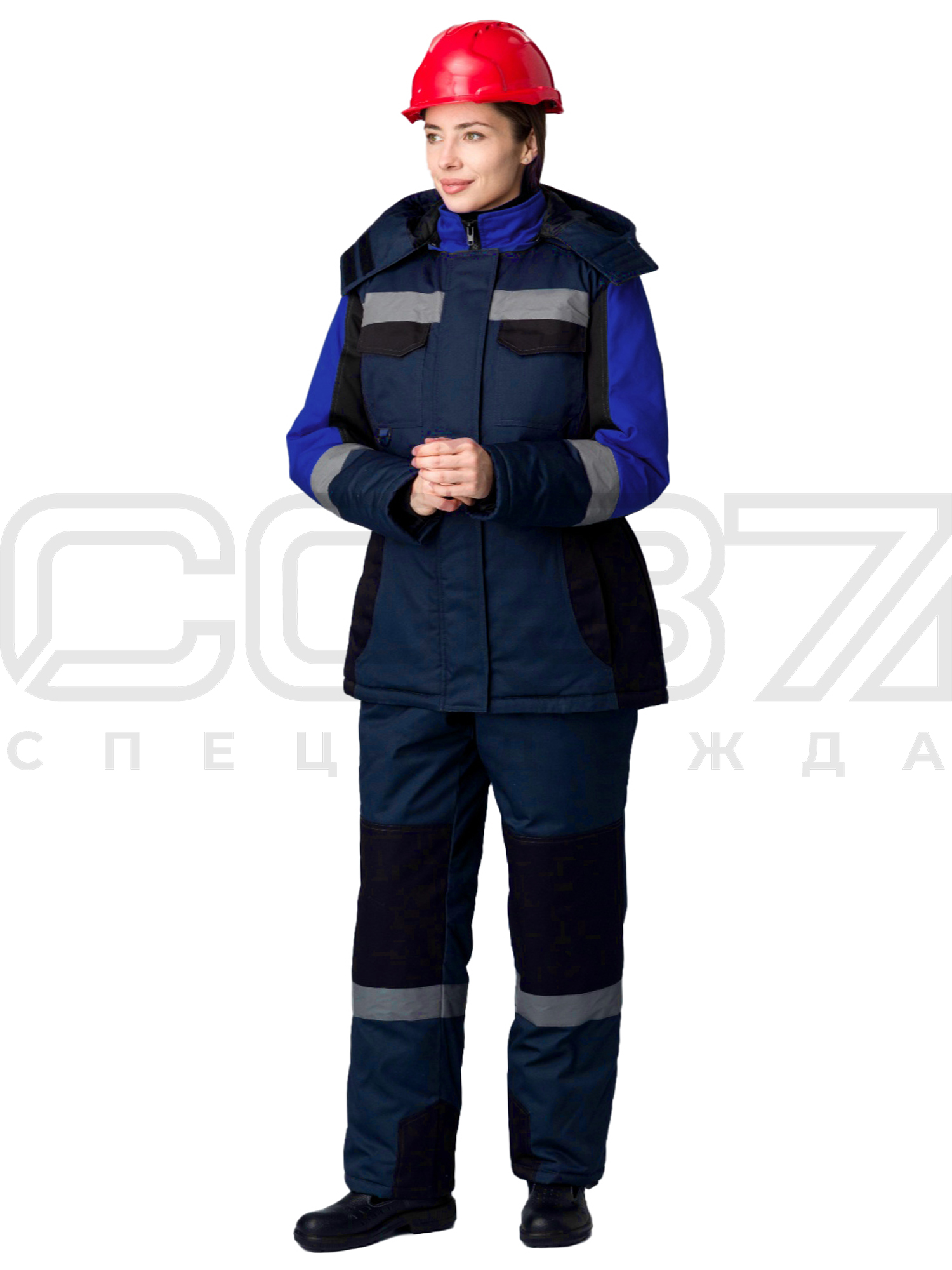 Костюм рабочий зимний женский "Рейдер" с СОП цв.т.синий/чёрный/васильковый тк.смесовая (куртка+пк) I в Москве
