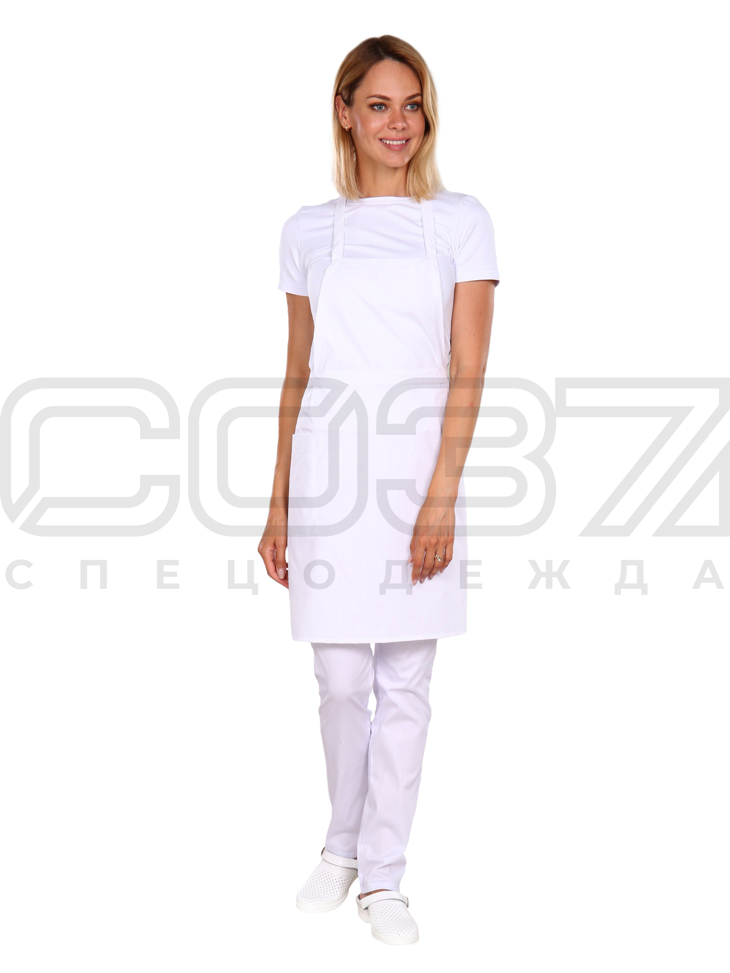 Фартук с нагрудником СБ303 цв.белый тк.тиси в Москве