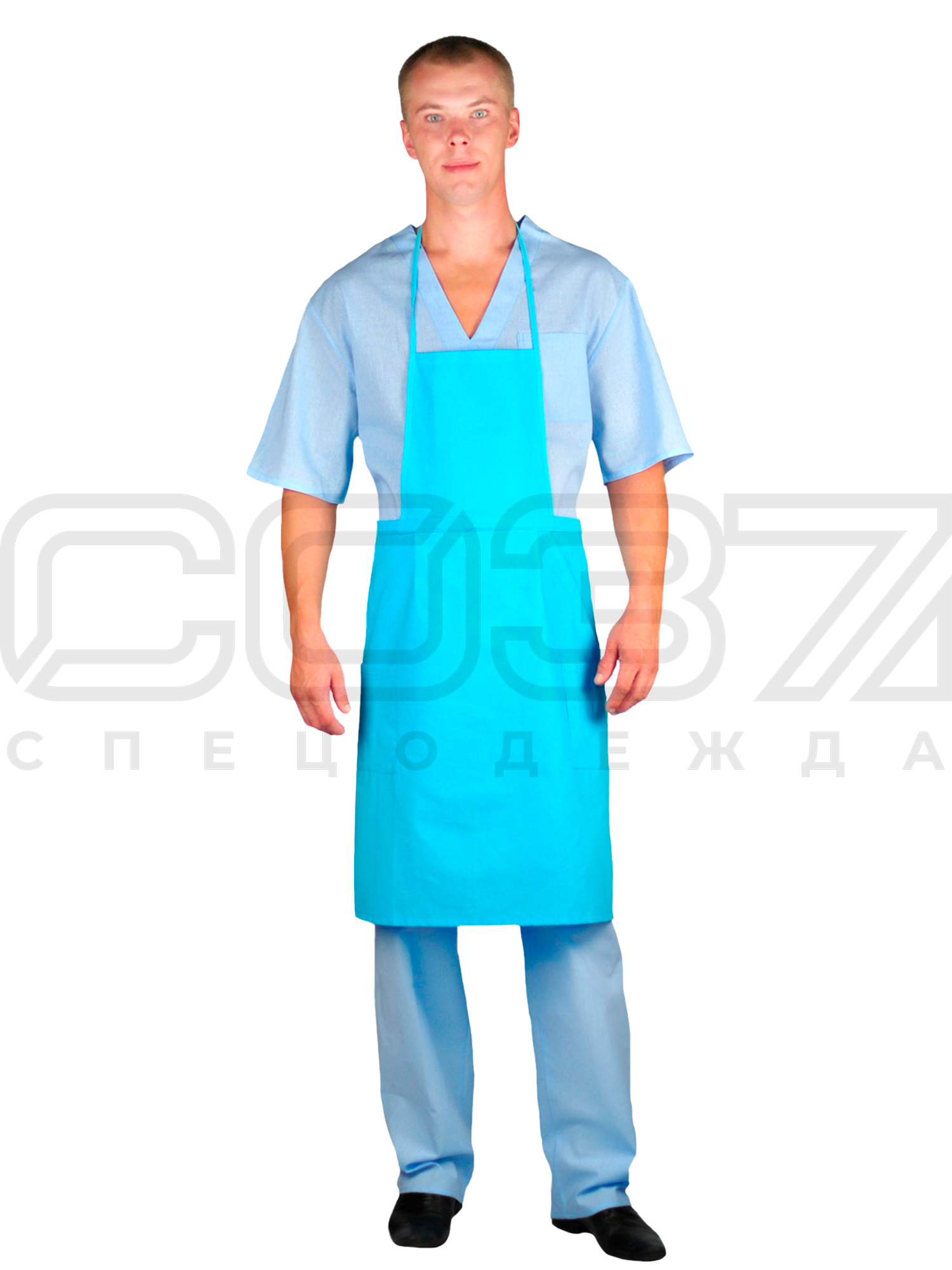 Фартук с грудкой "Кухмейстер" цв.голубой тк.бязь г/к в Москве